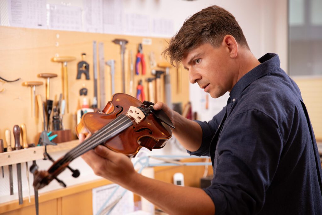 Von Anfang an legen wir größten Wert auf leichte Spielbarkeit und zuverlässige Funktion: Jedes VIOLINEO-Instrument wird in unserem Atelier in Münster vom VIOLINEO-Team um Geigenbaumeister Otto Kruppa professionell spielfertig eingerichtet. Dazu gehören die präzise Anpassung von Steg, Stimmstock und Saitenlage sowie der Einsatz hochwertiger Komponenten wie Feinstimm-Saitenhalter, Markenstege und Saiten namhafter Hersteller. Auch scheinbar nebensächliche Details – etwa die Qualität der Reißverschlüsse an Koffern und Taschen – werden bei VIOLINEO sorgfältig berücksichtigt, um langfristige Spielfreude sicherzustellen.